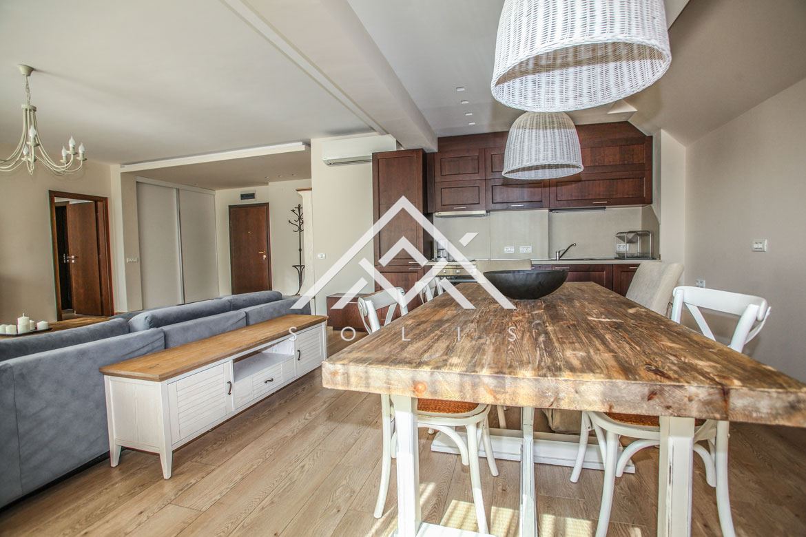 The apartment is finished with aluminum windows with thermal bridge and triple glazing, providing sound insulation and energy efficiency. The heating is with central heating and additionally a VRV air conditioning system is installed for optimal comfort in all seasons.