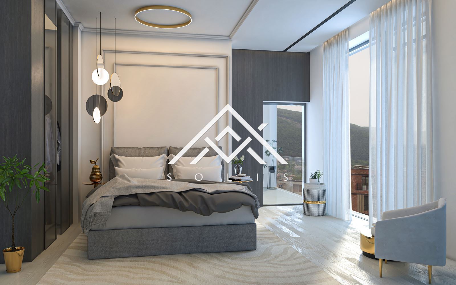 Master bedroom with en-suite bathroom, walk-in closet and south facing terrace overlooking Vitosha Mountain;