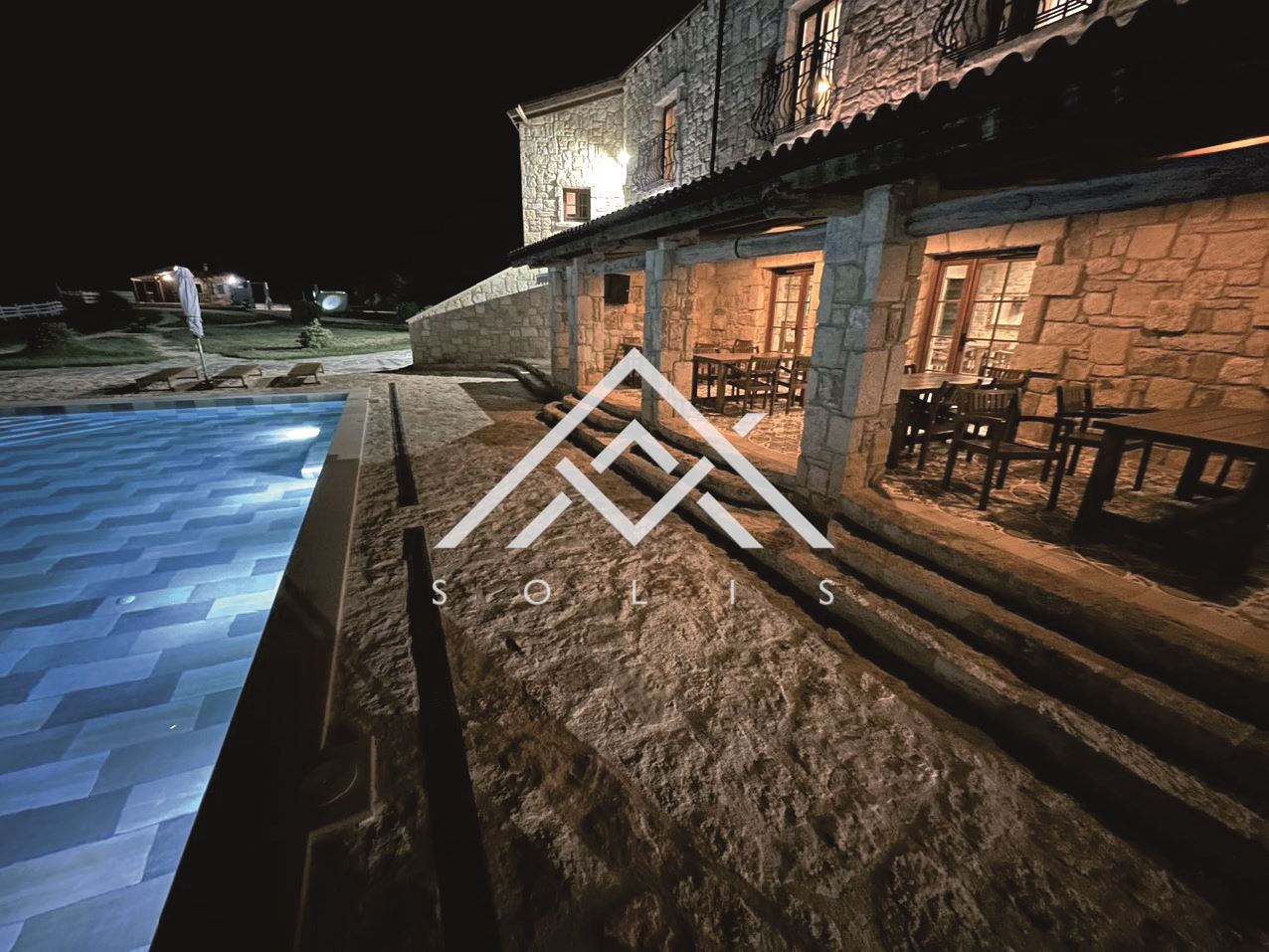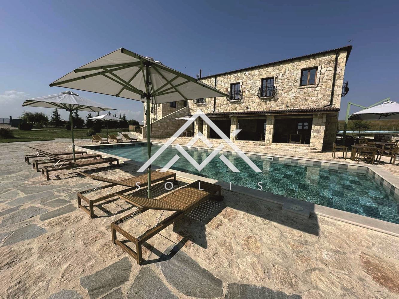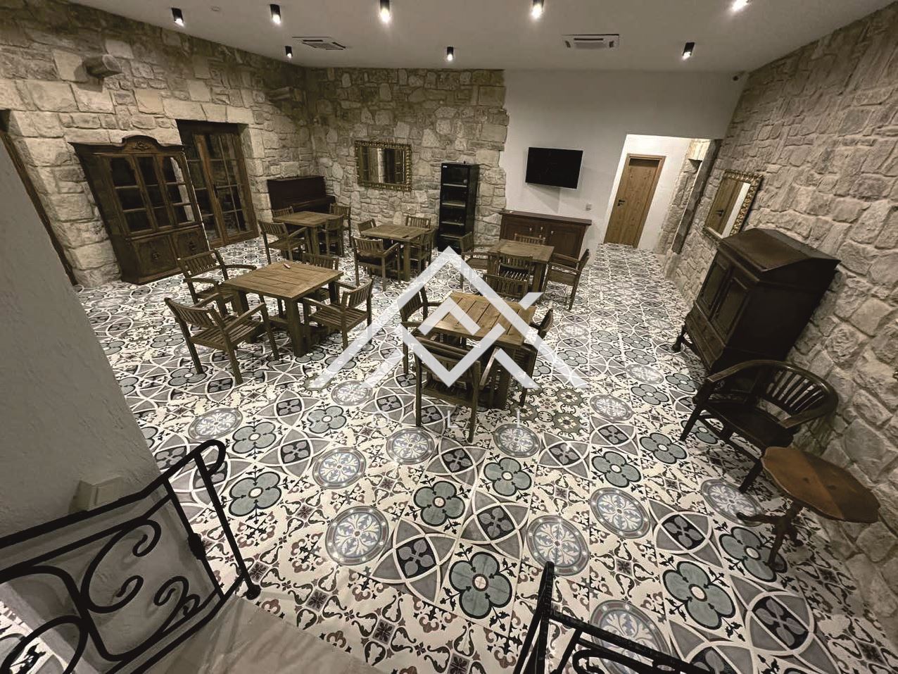 Имотът е съграден по всички древни и съвременни техники на каменната зидария, включително и необходимата железобетонна конструкция, в която е монтиран метален гредоред за обема между етажите, който поема инсталирането на цялата му инфраструктура. Използвани са керемиди антик. Имението е изградено от близо 1600 куб.м. дялан камък и зидове от 60 см (без лепене и имитации, а с реален градеж на зида). Изградени са лоби бар ( 100кв.м.), ресторант и подземен етаж, в който са разположени: кухня, механа, винарна, склад, техническо помещение и др. служебни помещения.