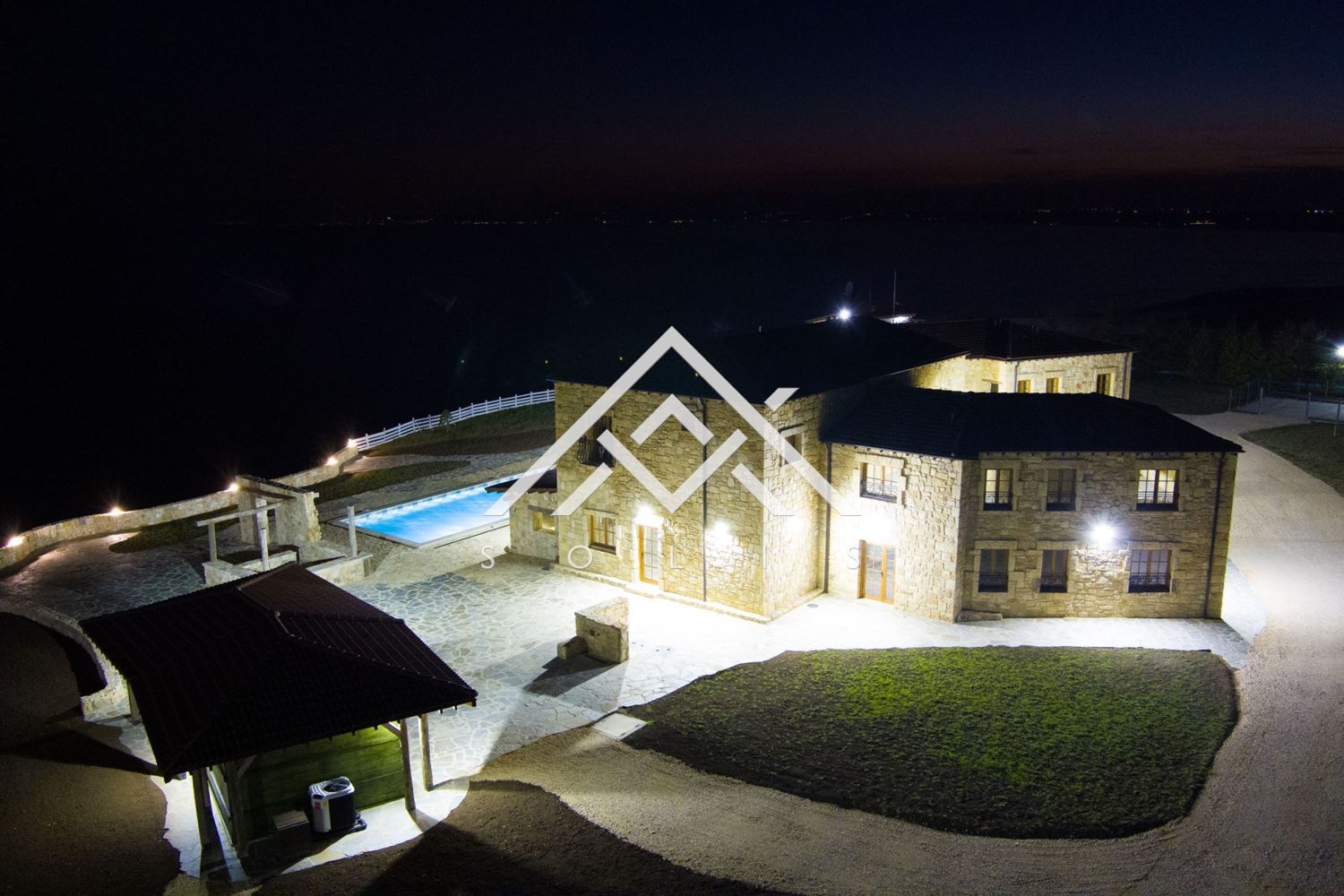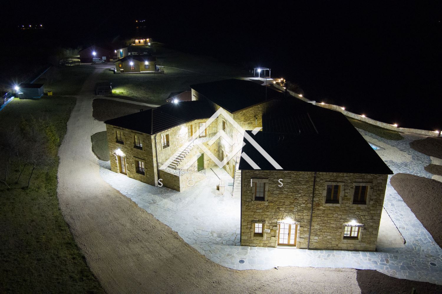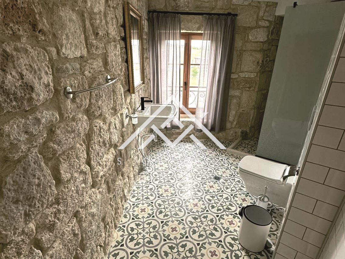 Имотът е съграден по всички древни и съвременни техники на каменната зидария, включително и необходимата железобетонна конструкция, в която е монтиран метален гредоред за обема между етажите, който поема инсталирането на цялата му инфраструктура. Използвани са керемиди антик. Имението е изградено от близо 1600 куб.м. дялан камък и зидове от 60 см (без лепене и имитации, а с реален градеж на зида). Изградени са лоби бар ( 100кв.м.), ресторант и подземен етаж, в който са разположени: кухня, механа, винарна, склад, техническо помещение и др. служебни помещения.